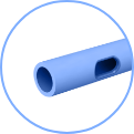 With the punch tool PP 37-00, 2 x 2 round lateral eyes are punched in disposable medical catheter tubes.