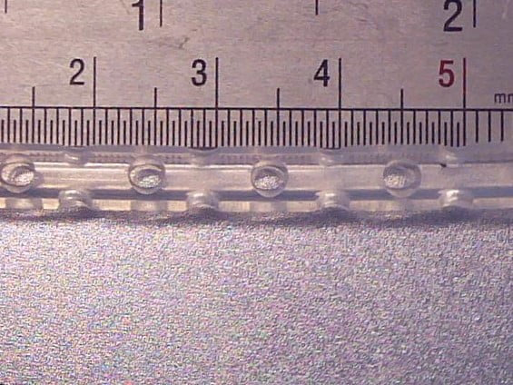 An eye pattern of 2 x 2 round lateral eyes is punched in each operation. The 2 eyes are punched 90° opposite for each other. Additional eyes are punched by forwarding the tube to the next eye punch press position. The eye position can be read on the ruler.