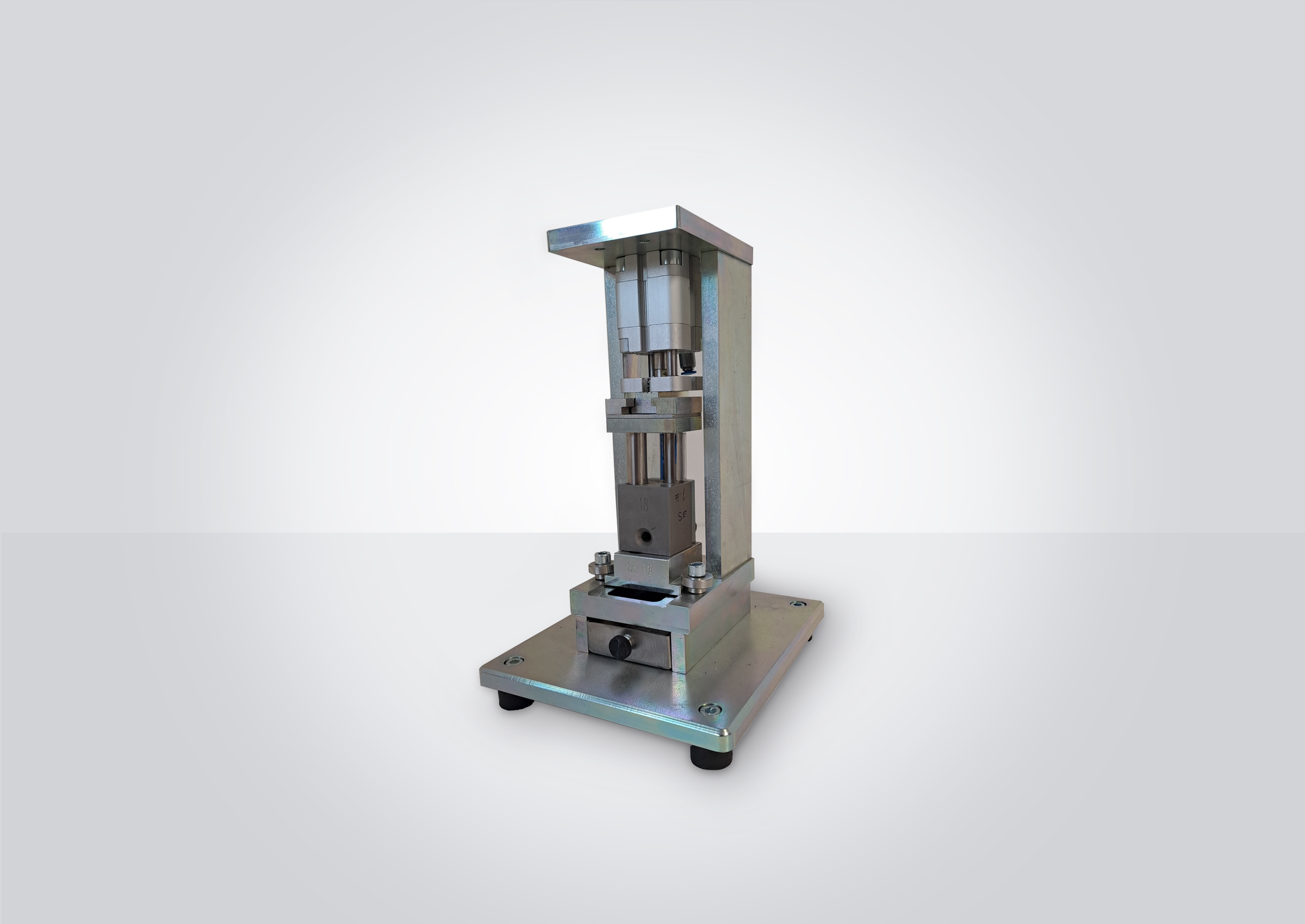 The PP 41-00 is pneumatically driven; an air cylinder activates the two punching needles. The air cylinder is controlled with a foot pedal. When the foot pedal is pressed, the air cylinder presses the needles down and pulls them back up when the pedal is released.